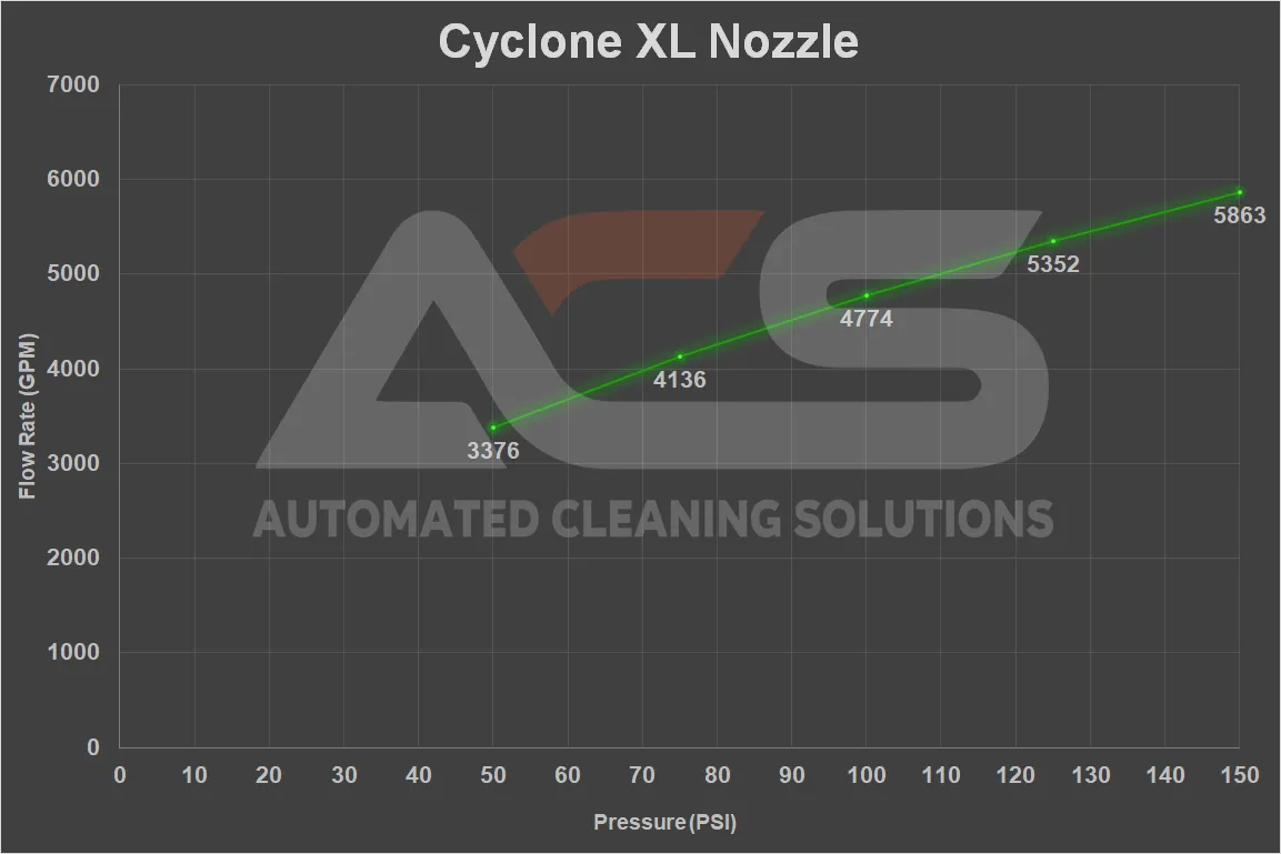 – Cyclone XL @ 6,000GPM, 4″ nozzle